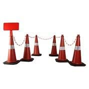 LADWA 750mm Combo of Impact Resistant Road 6 Traffic Safety Cones + 6 mtr chain + 6 Hooks & 1 Sign Plate with Reflective Strips Collar For Road Attention