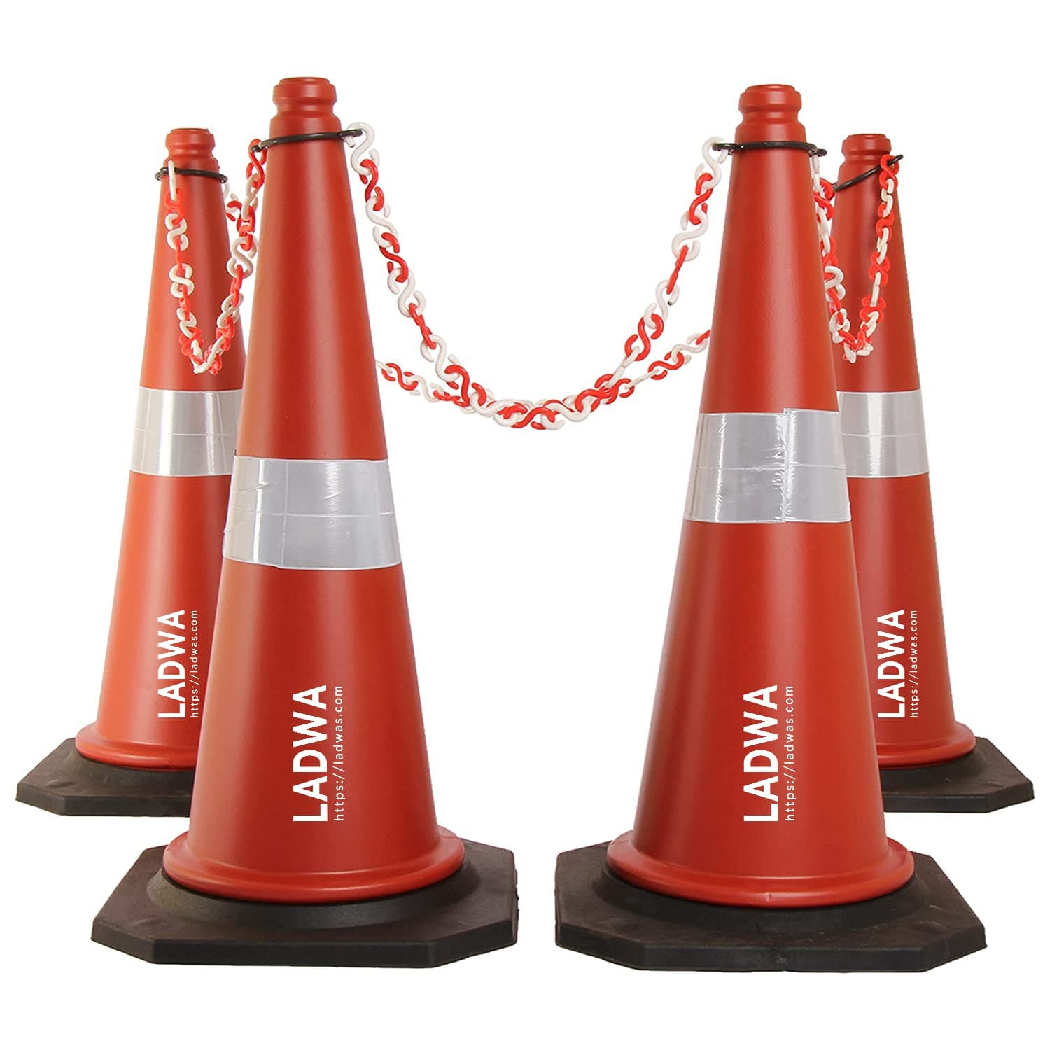 LADWA 4 Pcs 750mm Impact Resistant Road Traffic Safety Cones with Reflective Strips Collar