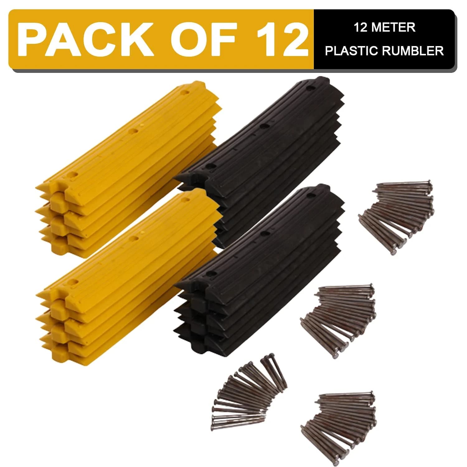 The LADWA 24 Piece, 12 Meter Plastic Rumblers Safety Speed Breaker is an effective and long-lasting traffic control solution designed to reduce vehicle speed and improve safety in critical zones. Made from high-quality plastic, this speed breaker is designed to withstand heavy traffic while maintaining its structure over time. The speed breaker set includes 24 modular pieces (12 yellow and 12 black) that form a highly visible and durable speed control solution for roads, parking lots, residential areas, and more.