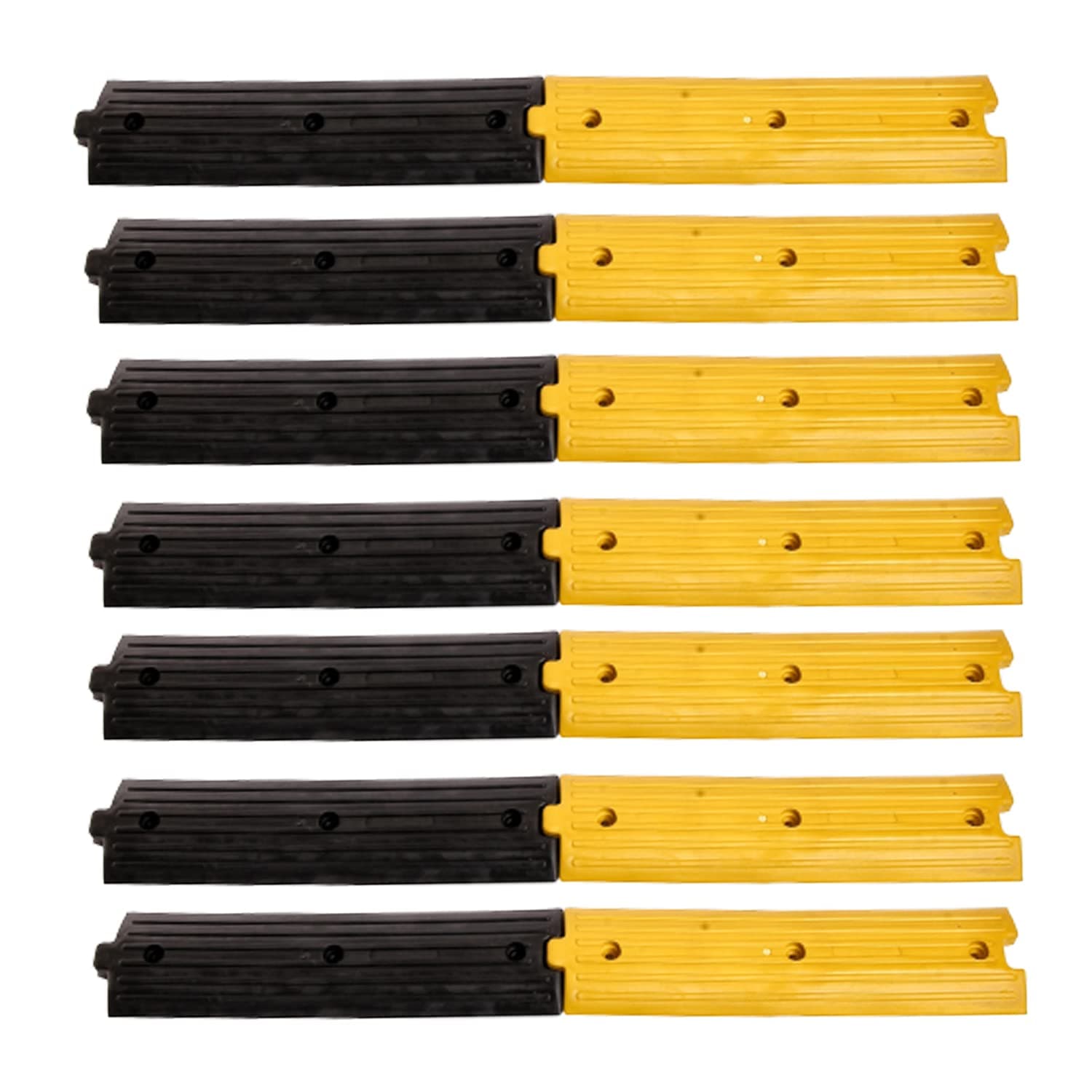 LADWA Plastic Rumblers with Reflector – Heavy-Duty Interlocking Speed Bump, Black & Yellow Cable Protector for Road Safety, Anti-Slip Design – 7 Meter