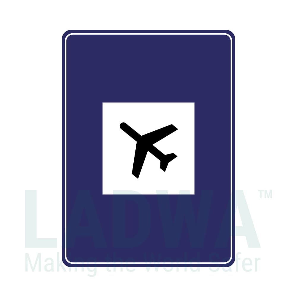 "The LADWA Airport Informative Retro Reflective Road Signage is a highly visible traffic sign designed to provide information about the location of an airport or airport-related facilities along the road. This informative road sign is constructed with retro-reflective materials, ensuring excellent visibility during both daytime and nighttime, making it highly effective in all lighting conditions. \n \nThe LADWA Airport Informative Retro Reflective Road Signage is an important tool for traffic management, providing valuable information to drivers and travelers about the location of the airport or airport-related facilities. As an informative sign, it aids in enhancing road safety by guiding drivers and travelers towards the airport route, reducing the chances of confusion and wrong turns. \n \nConstructed with retro-reflective materials, the sign ensures optimal visibility during both daytime and nighttime, making it highly effective in various lighting conditions. The standard design of the sign includes clear and concise information, incorporating airport symbols or directional arrows, allowing drivers and travelers to easily identify the route to the airport. \n \nThe LADWA Airport Informative Retro Reflective Road Signage plays a crucial role in providing essential information to road users, helping them navigate to the airport or airport facilities safely and efficiently. Whether it's directing incoming travelers or guiding drivers towards the airport, this informative sign contributes to a safer and more organized transportation system around airport areas."