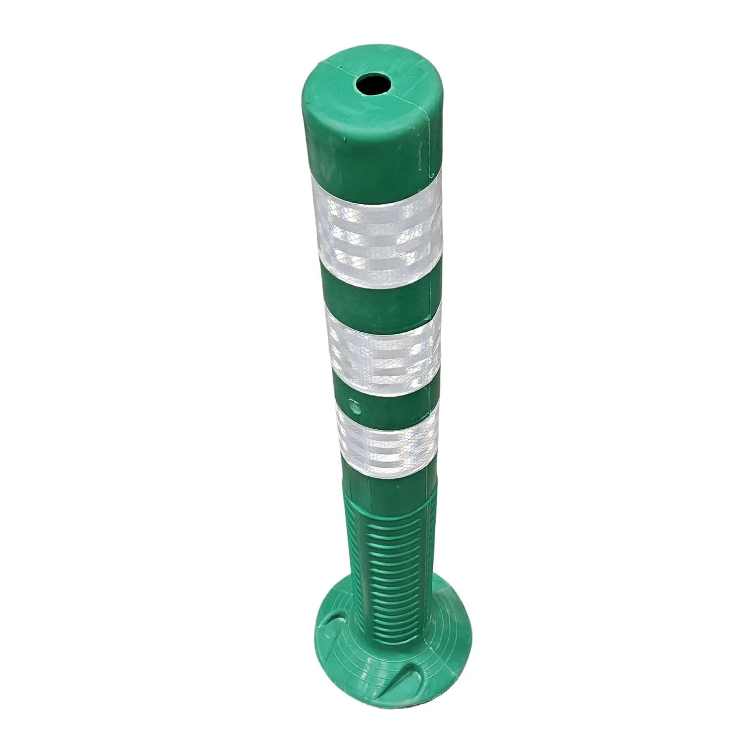 ADWA Flexible Plastic Spring Post Barrier (Green)—a durable and high-visibility solution designed for multiple applications. Made from high-grade elastomeric polymer, this spring post offers exceptional flexibility and long-lasting performance, even in challenging weather and traffic conditions. Equipped with three white reflective tapes, the post ensures clear visibility both day and night, helping reduce accidents and improve road safety. The bright green color further enhances its visibility, making it ideal for guiding traffic, marking lanes, or securing parking zones. This T-top bollard is easy to install, lightweight enough for flexible positioning, yet sturdy enough to stay in place during use. The spring-back design absorbs minor impacts and returns to its original form without damage—perfect for high-traffic or sensitive areas. Whether you're managing a commercial parking lot, securing a residential driveway, or marking restricted zones at a construction site, the LADWA Spring Post offers a dependable, easy-to-use solution that meets modern safety standards.